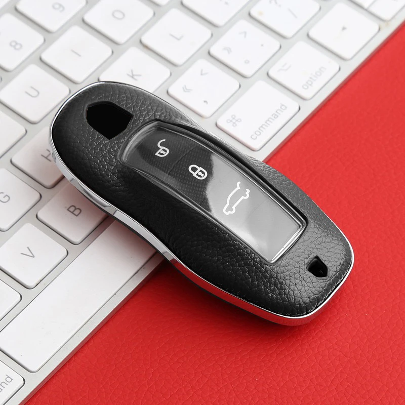 Купить Key Case Fob Remote Cover Shell Real Leather Porsche MACAN Cayenne Panamera Taycan Boxster 718/911 Replace Accessories за 1000рублей
