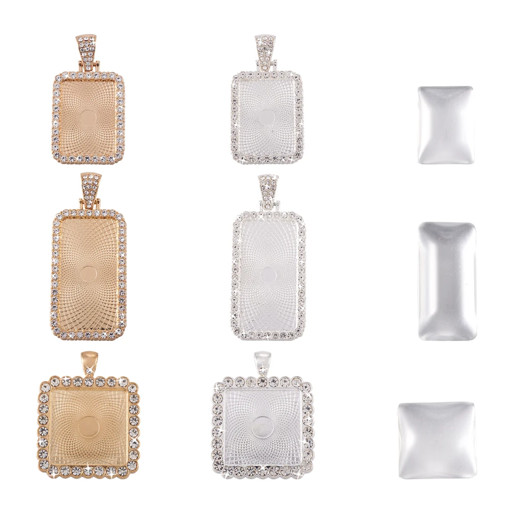 Купить Kissitty 24pcs/box Rectangle Square Alloy Cabochon Setting DIY Geometry Pendant Making Kit For Handmade DIY Necklace Making Gift за 600рублей