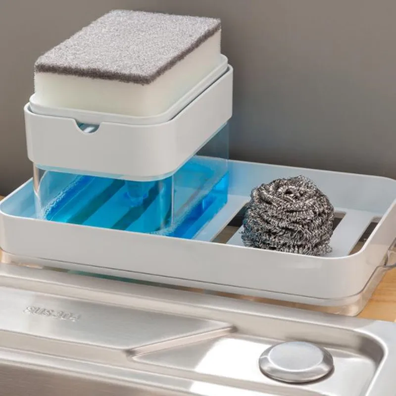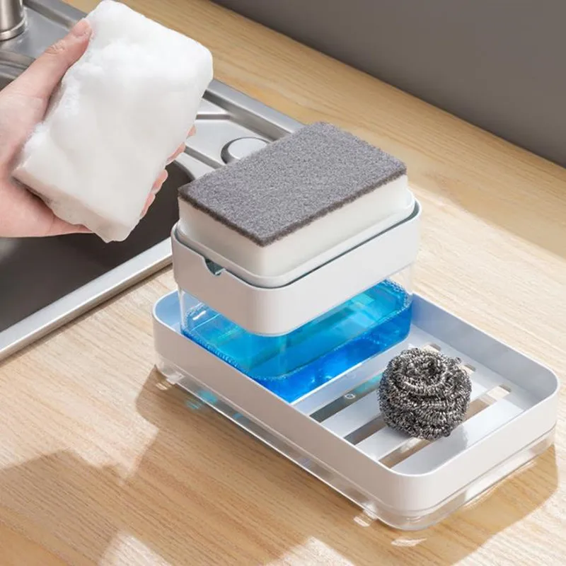 Купить Kitchen Detergent Press Type Automatic Liquid Filling Out Soap Storage Box Sponge Clean Cloth Combination Dishwashing Tool Set за 400рублей