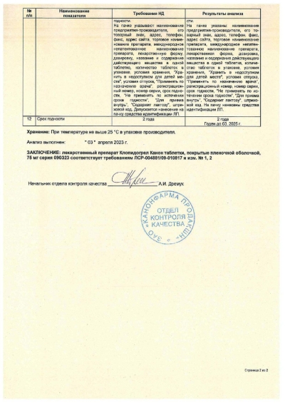 Клопидогрел Канон 0,075 N90 Табл П/Плен/Оболоч - Цена 944 . . .