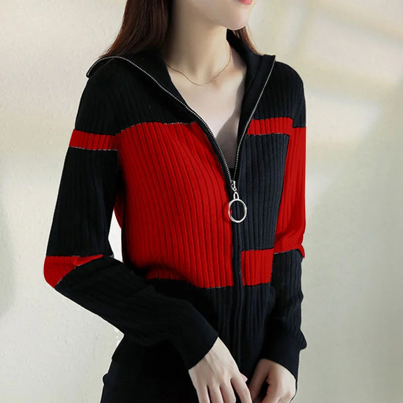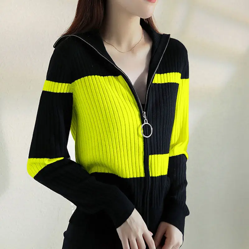 Купить Knitted Jacket Female 2021 Autumn Striped Slim Coat Simple Contrast Color All-Match Zipper Cardigan Women Blouses Oversized Tops за 500рублей