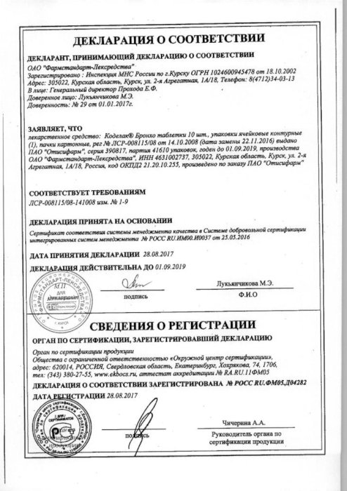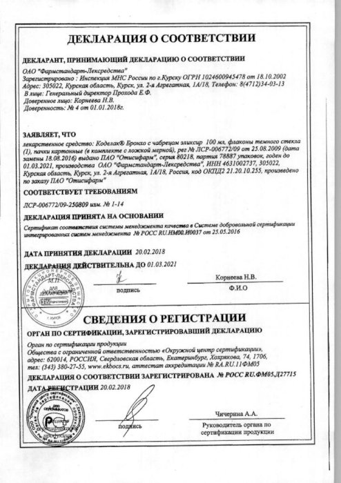 Коделак Бронхо цена в Ржеве от 154 руб ., купить Коделак . . .