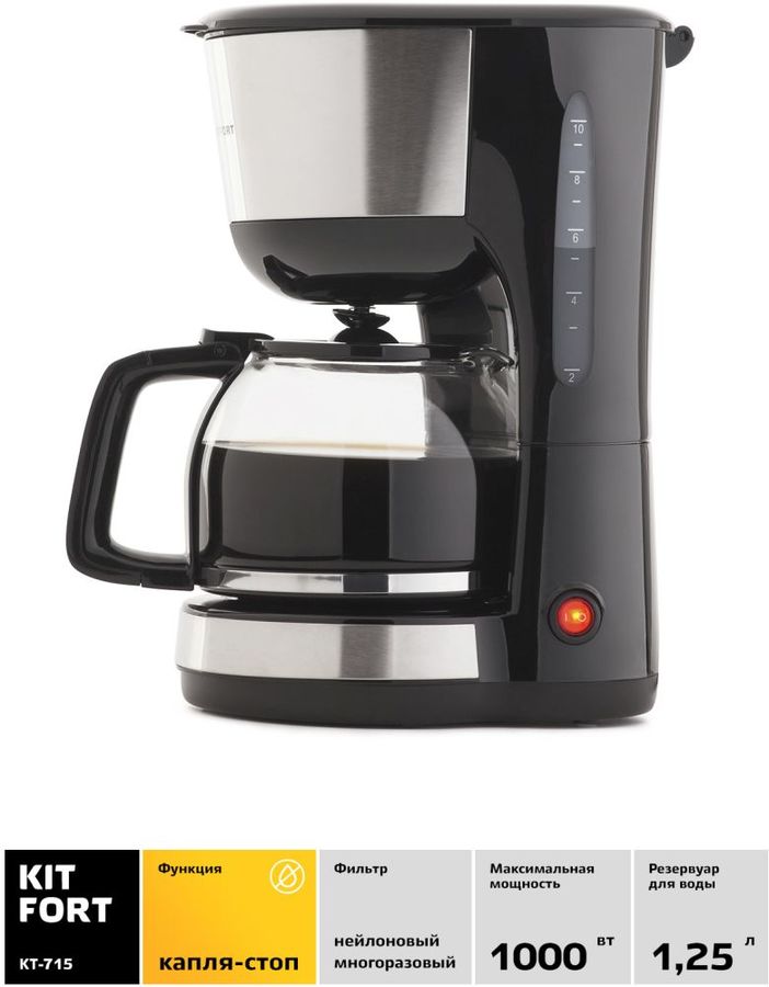 Цена: от 1550 р . до 1990 р . >>> Кофеварка KITFORT KT-715 черный Купить по лучшей цене Описание, фото, видео Рейтинги, тесты, сравнение Отзывы, обсуждение пользователей