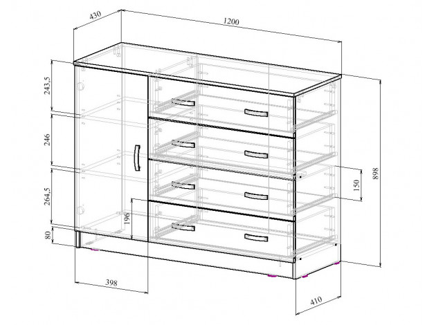 Комод - 1 шт Комплект креплений - 1 шт Инструкция - 1 шт.