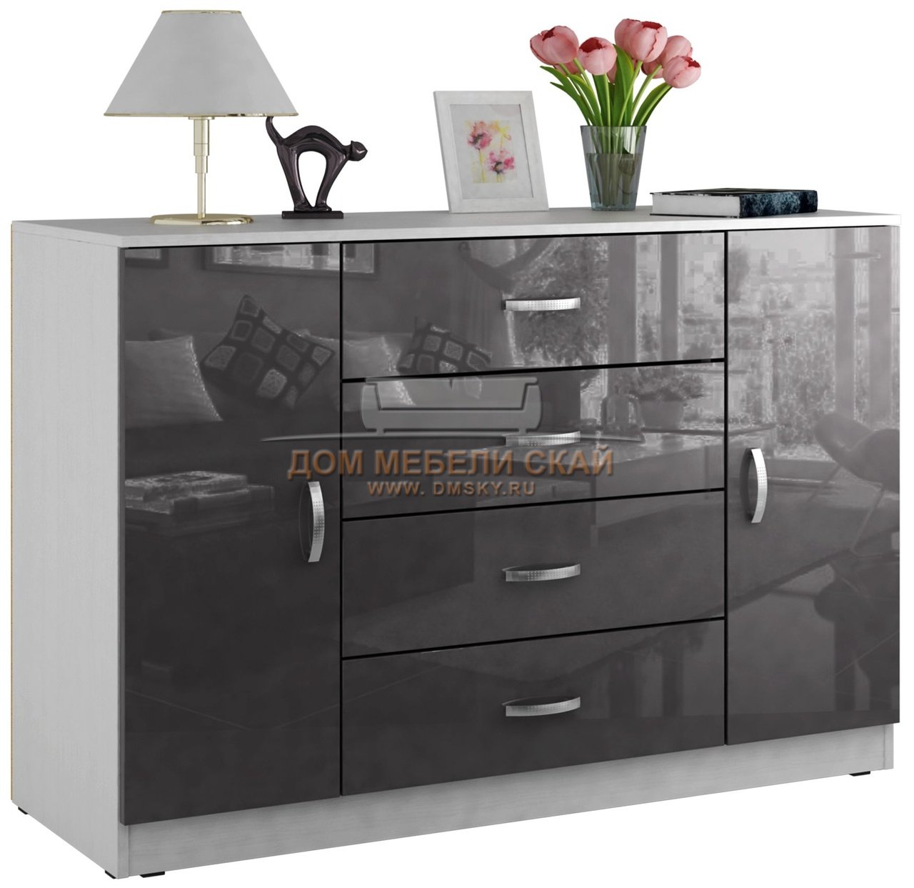 Купить Комод Серый Глянцевый