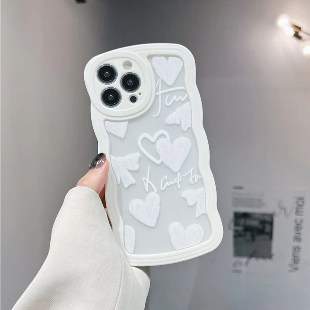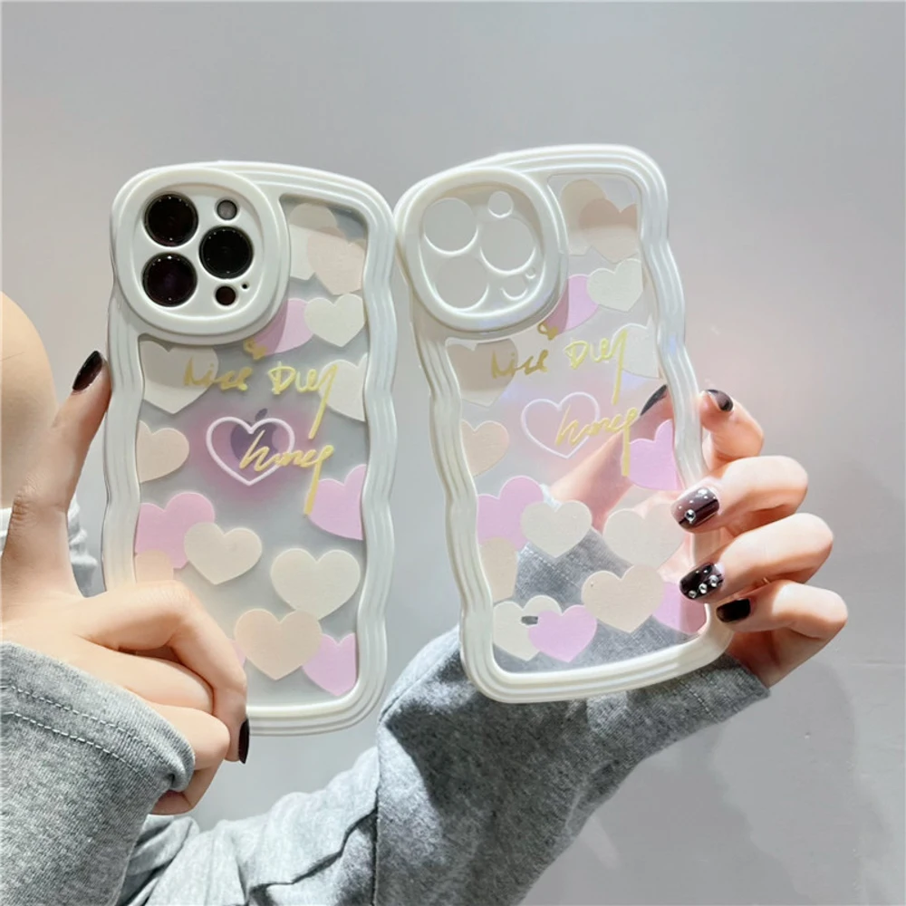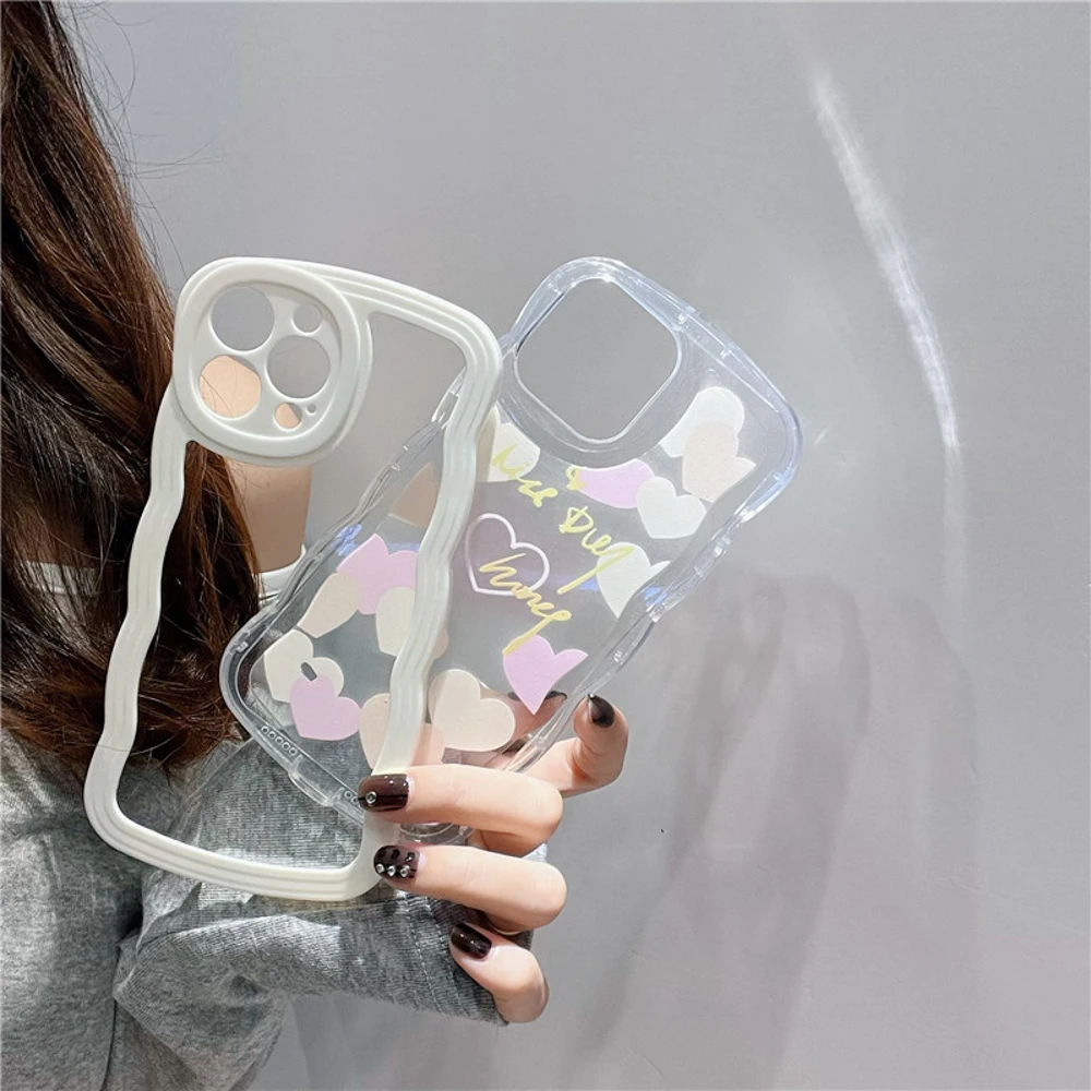 Купить Korea Love Heart Wave Transparent Phone Case for iphone 14 Case iPhone 12 13 14 Pro Max 11 XR X XS Max 7 8 plus SE 3 2022 Cover за 150рублей