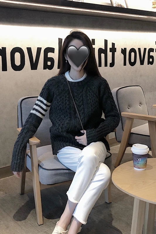 Купить Korean version of the fall/winter hedging lazy style thick line TB knit sweater round neck sweater women thick and versatile за 2350рублей