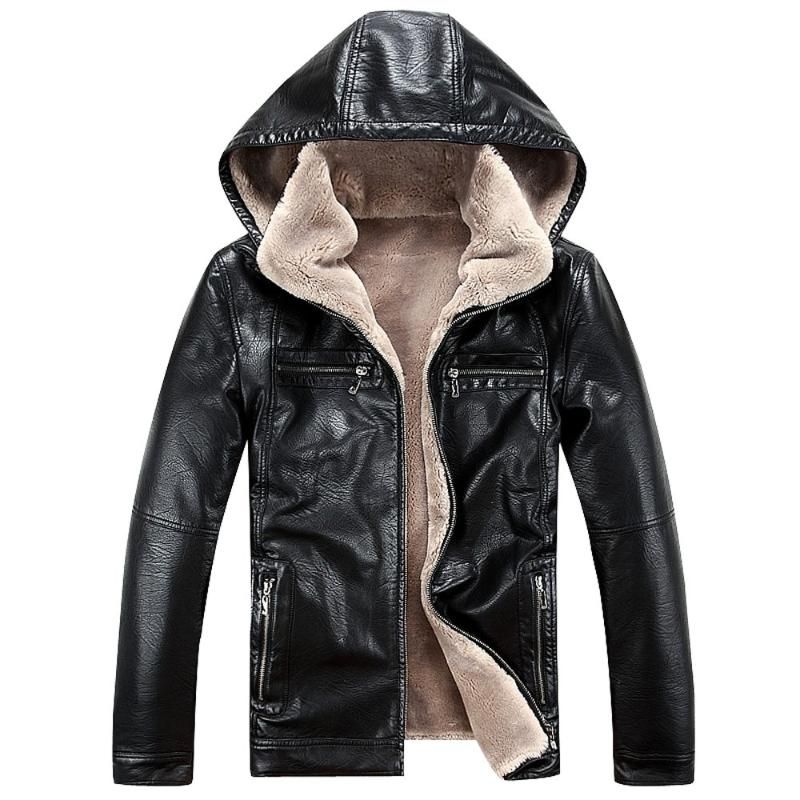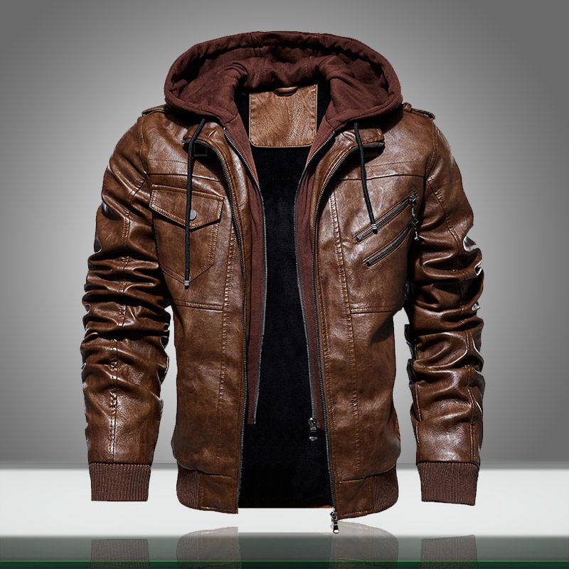 Осенняя Кожаная Куртка С Капюшоном