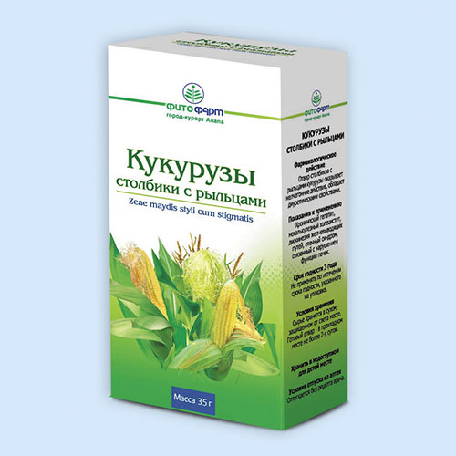 Кукурузы столбики с рыльцами . По 40 г измельченных столбиков с рыльцами в пачках картонных с внутренним пакетом . Текст инструкции в полном объеме наносится на пачку .