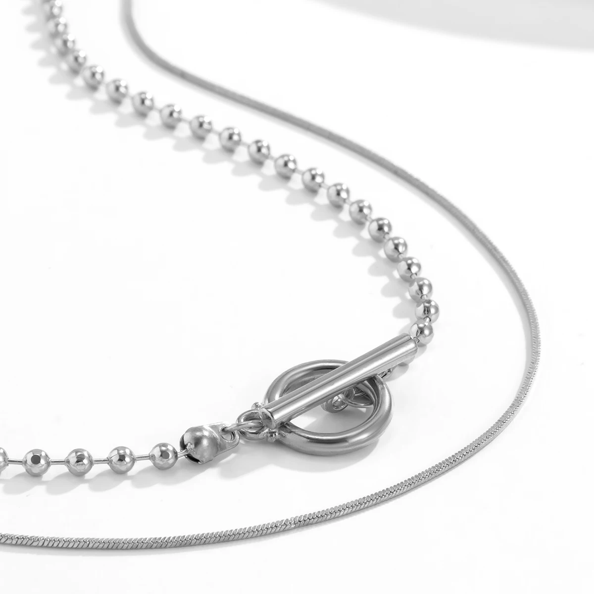 Купить KunJoe Multilayer CCB Beaded Square Snake Chain Choker Necklace for Men Punk Simple Silver Color OT Buckle Clavicle Chain за 150рублей