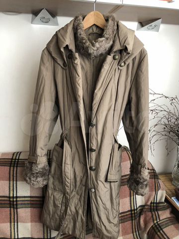 Бежевое Зимнее Пальто С Мехом