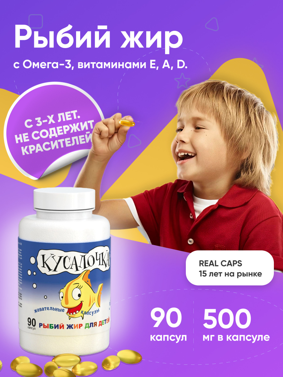 Купить КУСАЛОЧКА РЫБИЙ ЖИР ДЛЯ ДЕТЕЙ N60 ЖЕВ КАПС по цене 143 руб . в интернет аптеке в Рыбном, всегда в наличии, инструкция по применению КУСАЛОЧКА РЫБИЙ ЖИР ДЛЯ ДЕТЕЙ N60 ЖЕВ КАПС на Apteka .ru .