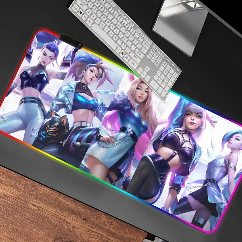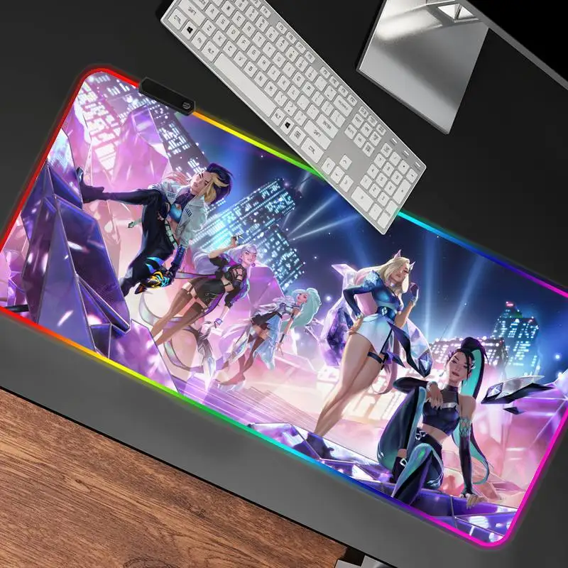 Купить LOL KDA ALL OUT K/DA Large Gaming RGB Mouse Pad Lockedge Mouse Mat For Laptop Computer Desk Pad Keyboard Mat Mousepad for Gamer за 600рублей
