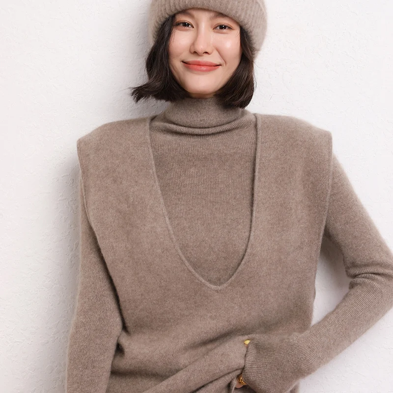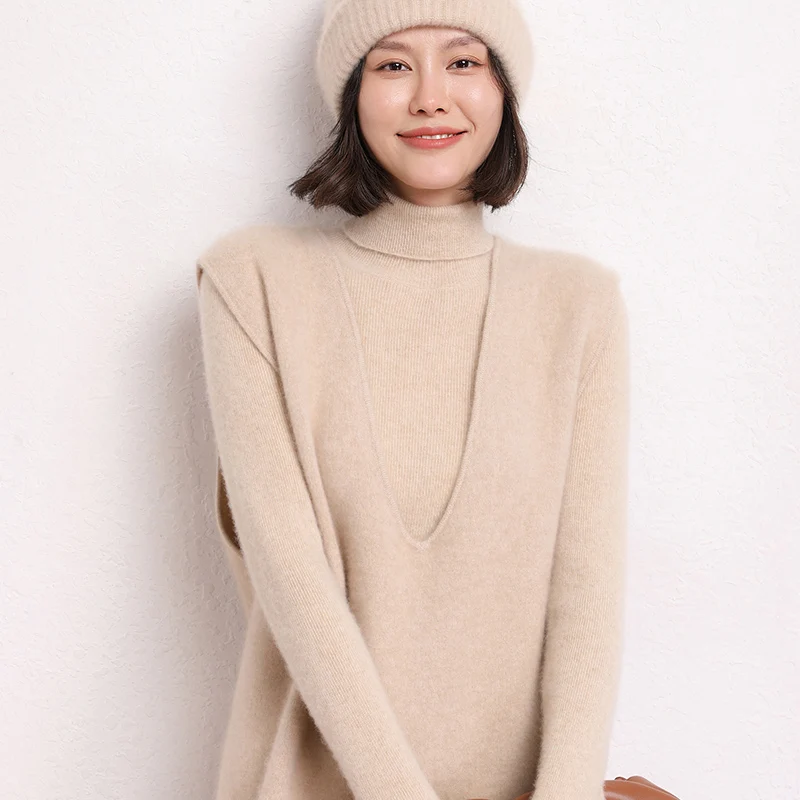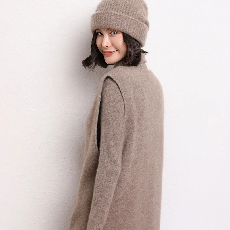 Купить LONGMING Women Vest 100% Cashmere Vest V-Neck Knit Top Sleeveless Wool Sweater Vest Oversized Solid Knitted Vest Basic Vests Y2K за 3300рублей