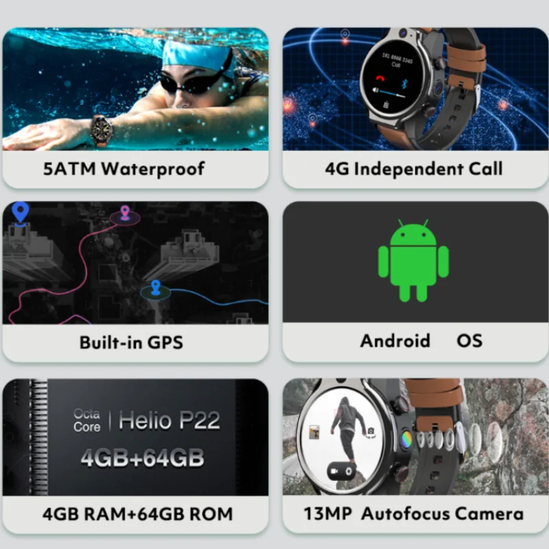 Купить LZAKMR NEW 5ATM Waterproof Smart Watch Man 4G SIM Card Android OS Face ID 32G ROM 1600 mAh Battery GPS Smartwatch Dual Camera за 7600рублей