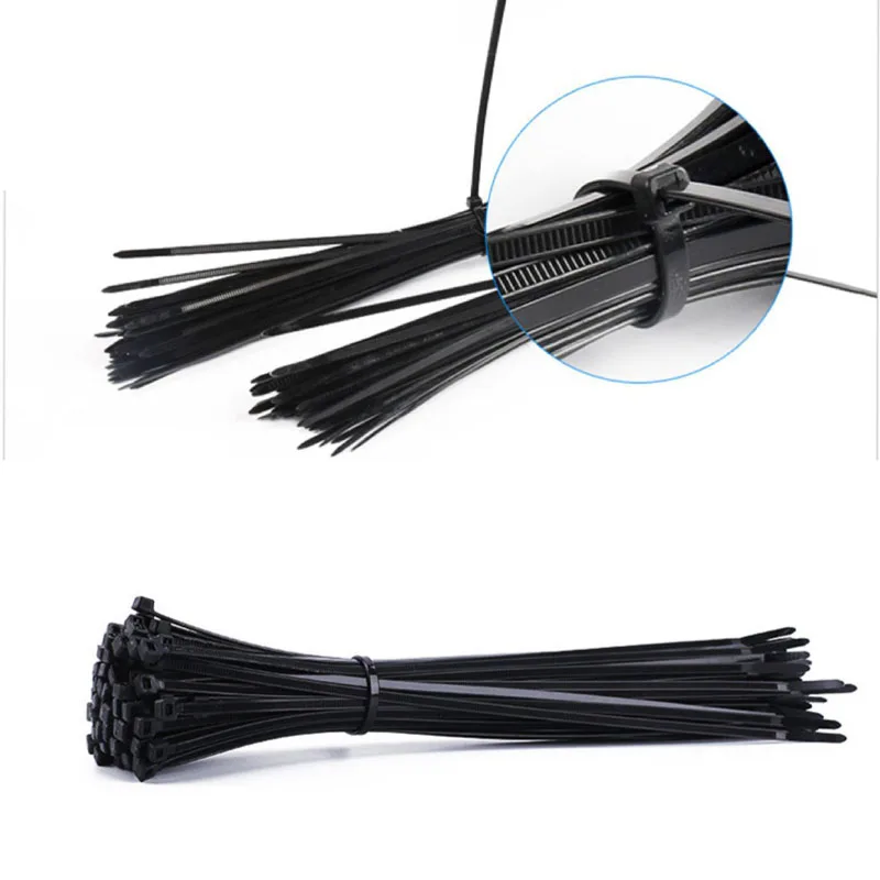 Купить Laços de cabo de plástico de travamento automático 100 preto e branco laços de cabo de anel fixo laços de cabo de fecho de corre за 300рублей