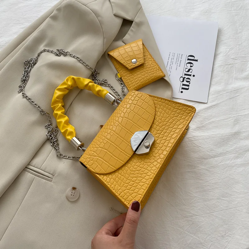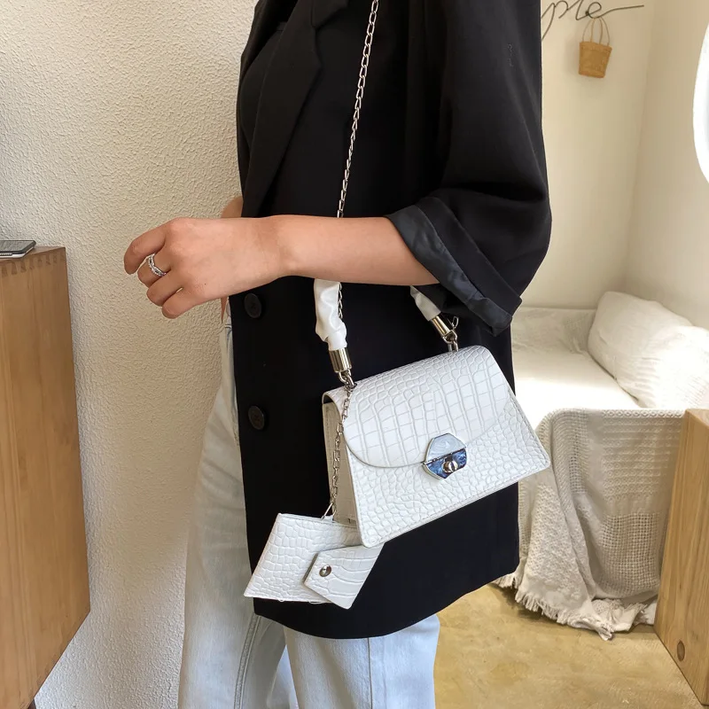 Купить Ladies Fashion Solid Color Sexy Snake Pattern Two Packs Compound Bag Shoulder Handbag Metal Chain Crossbody Small Square Bag за 900рублей