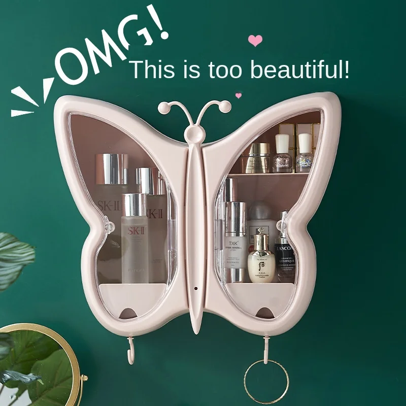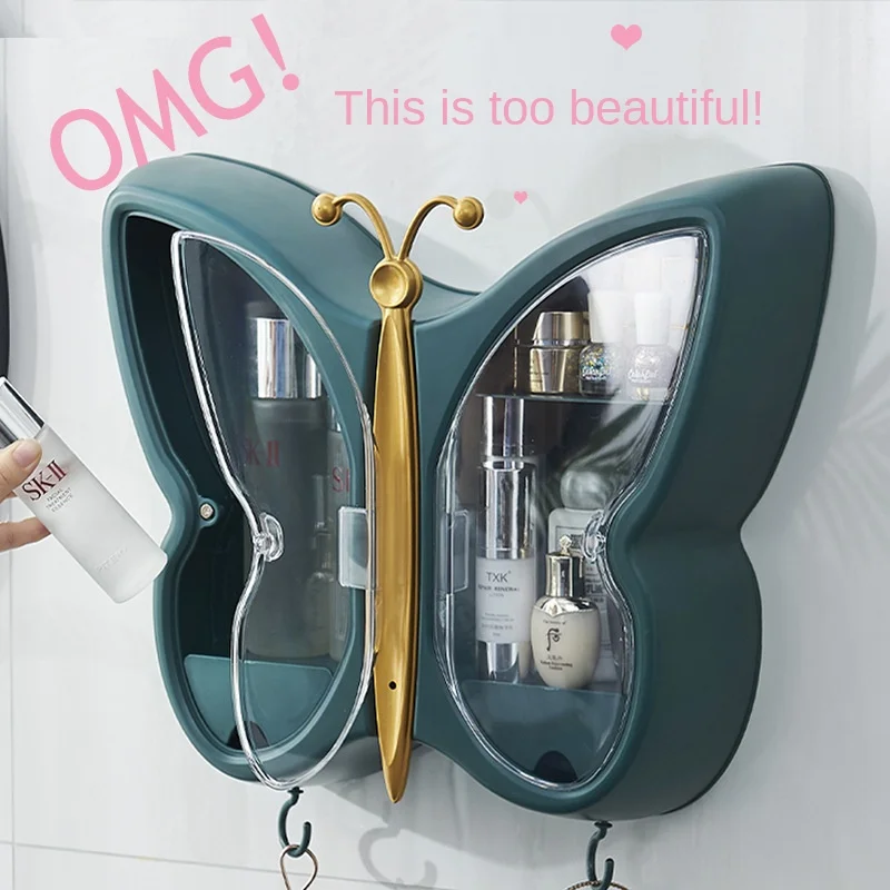 Купить Large Capacity Butterfly Cosmetics Shelf Bathroom Accessories Storage Box Wall-type Non-perforated Dust-proof Bathroom Wall Rack за 3000рублей