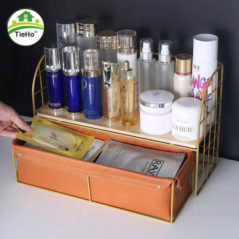 Купить Large Capacity Desktop Cosmetic Storage Rack Bedroom Lipstick Skin Product Storage Organizer With Lether Drawer Home Accessories за 350рублей