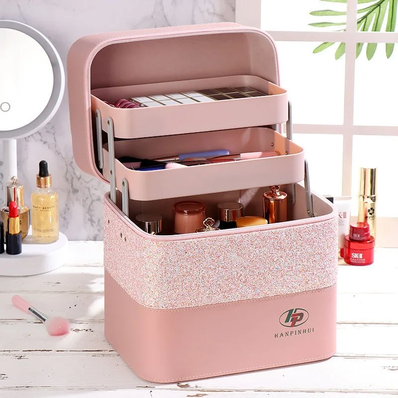 Купить Large Capacity Korean Cosmetic Bag Hand-held Makeup Organizer Box Multifunctional Makeup Skincare Storage Jewelry Box Travel за 1100рублей