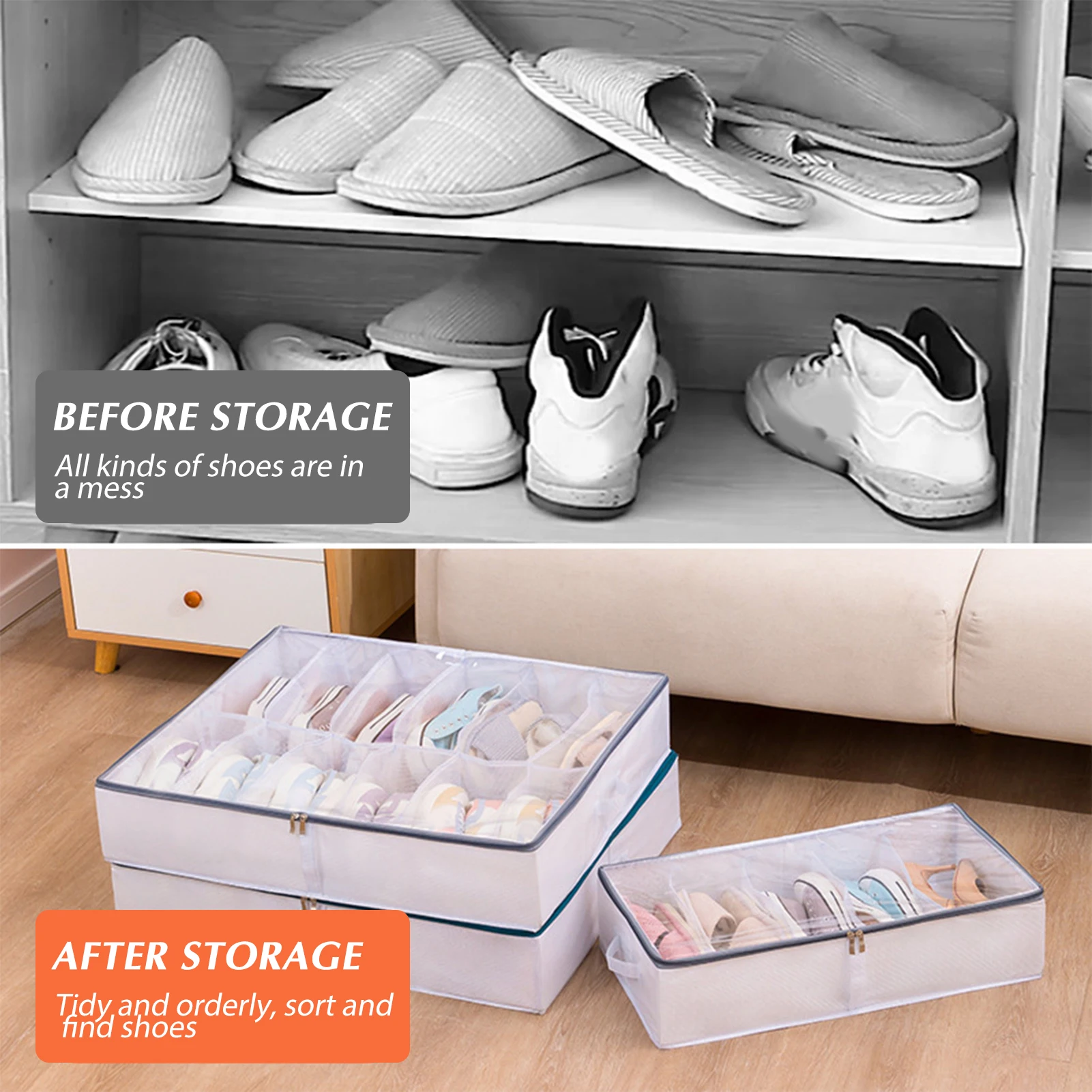 Купить Large Under Bed Clothes Item Storage Dustproof Shoe Storage Bag Container Clothes Zippered Organizer Foldable Clear Window за 1050рублей