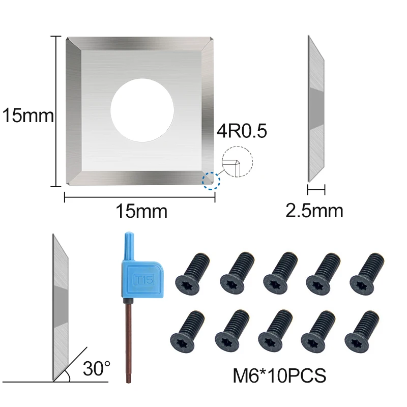 Купить Lathe Too Carbide Insert 10pcs 15x15x2.5mm 30D 4R0.5 Wood Lathe Turning Tool Cutter Blade Replacement for Woodworking Planer за 1000рублей