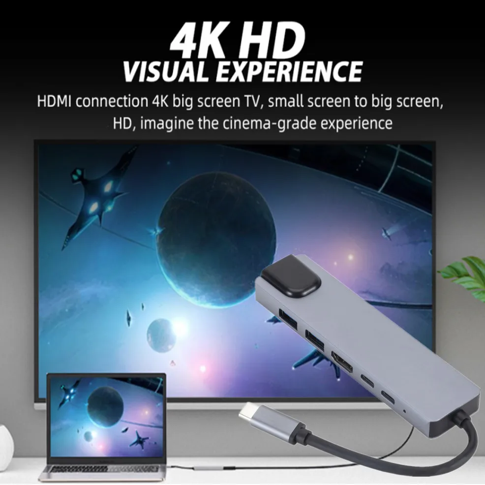 Купить LccKaa 6 in 1 USB C Hub Multi USB Docking Hub Converter 2 USB 3.0 HDMI-compatible Type-C PD RJ45 Adapter Notebook Accessories за 1150рублей
