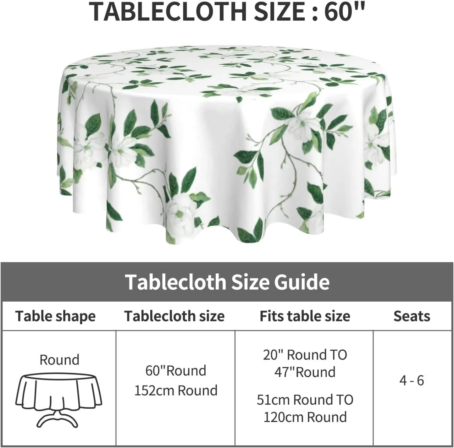 Купить Leaf Tablecloth Green Floral Leaf Round Tablecloth 60 Inch Washable Reusable for Home Parties Dinner Picnic Dining Kitchen Decor за 400рублей