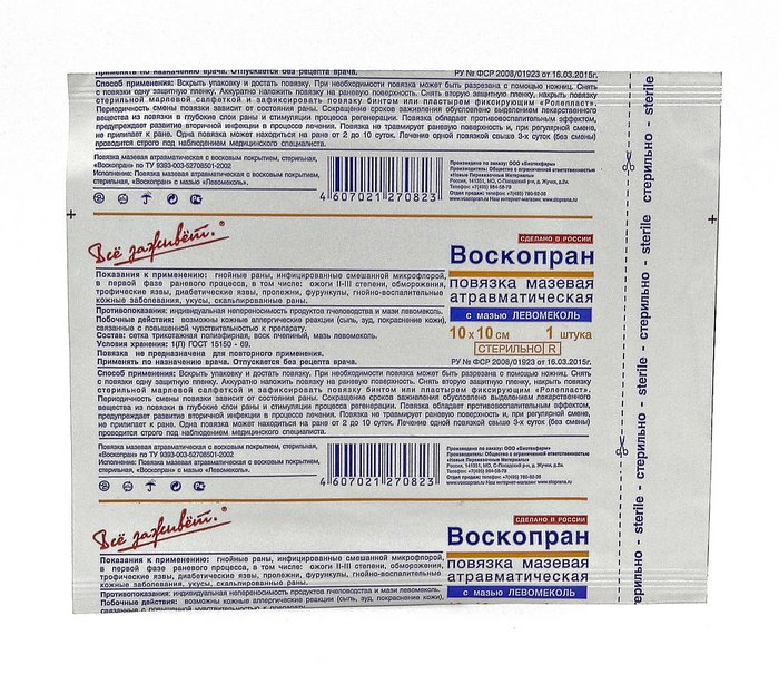 Купить ВОСКОПРАН С МАЗЬЮ ЛЕВОМЕКОЛЬ 5Х7,5СМ N5 ПОВЯЗ в Москве можно в удобной для вас аптеке, сделав заказ на Apteka .ru . Цена на ВОСКОПРАН С МАЗЬЮ ЛЕВОМЕКОЛЬ 5Х7,5СМ N5 ПОВЯЗ в Москве - 377 рублей .
