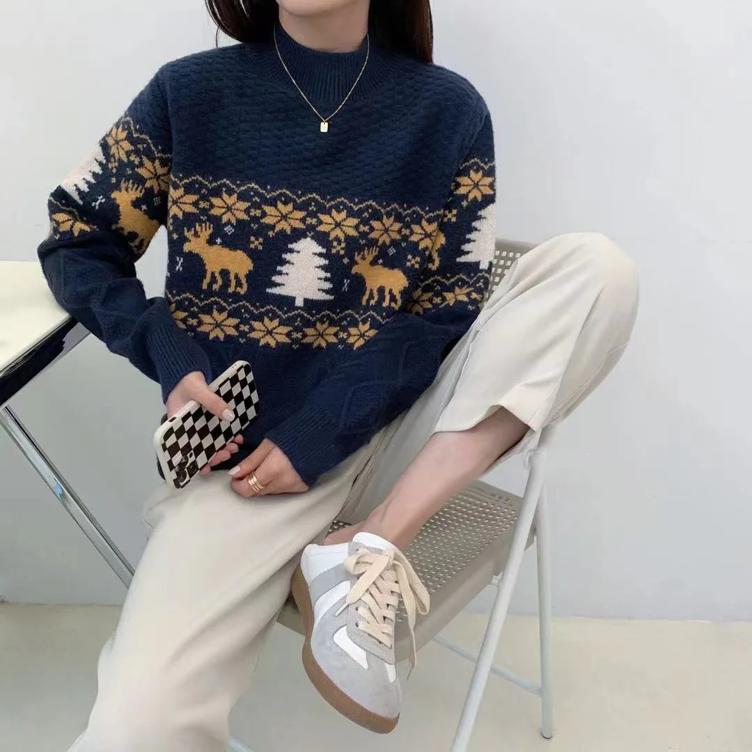 Купить Li zhi yee half a turtleneck pullovers loose thin fashion jacquard knitting Christmas render unlined upper garment to coat за 950рублей