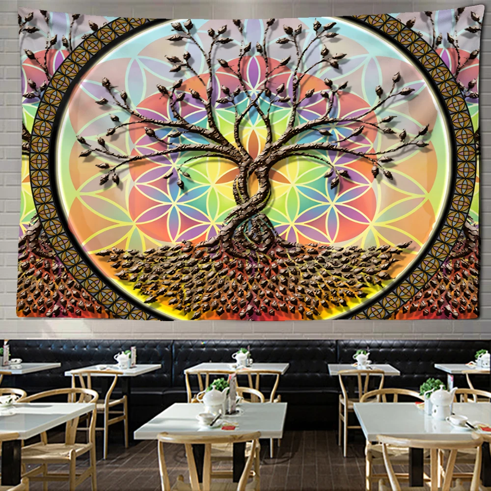 Купить Life Trees Tapestry Wall Hanging Psychedelic Magic TAPIZ Bohemian Hippie Wishing Tree Sofa Cushion Home Decor за 550рублей