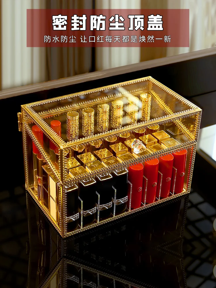 Купить Lipstick Storage Box Desktop Multi-Grid Cosmetics Box with Lid European Light Luxury Lip Lacquer Shelf за 2050рублей