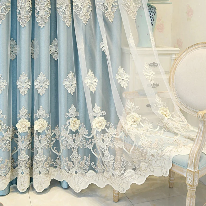 Купить Luxurious Romantic Embossed Curtain Double Layer Blackout Window Drapes For Bedroom High-end Embroidery Sheer Bottom Velvet Lace за 1050рублей