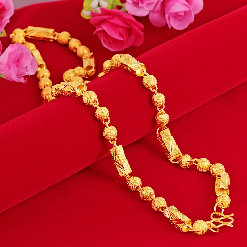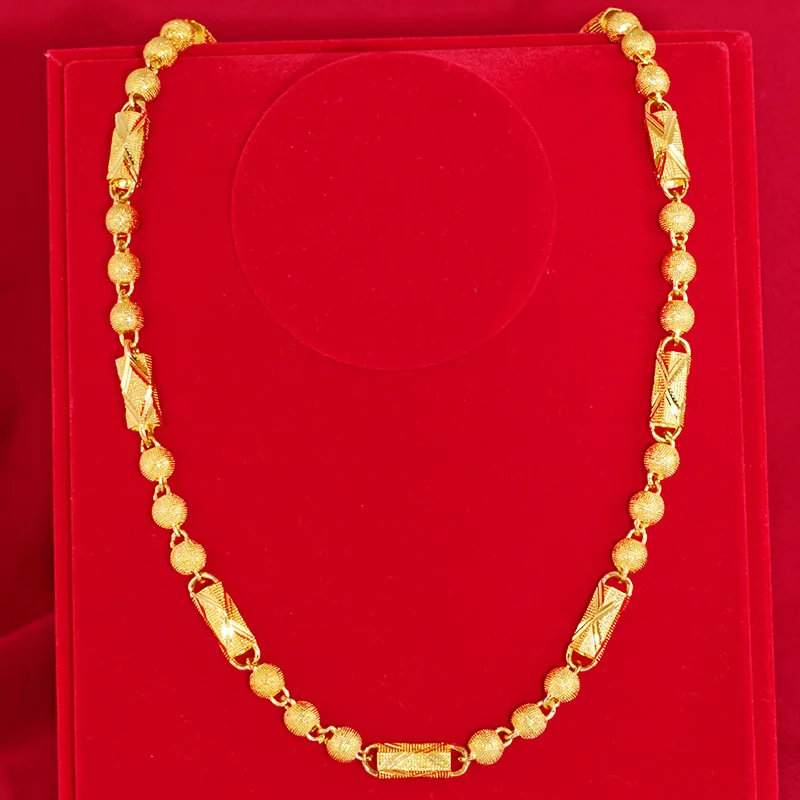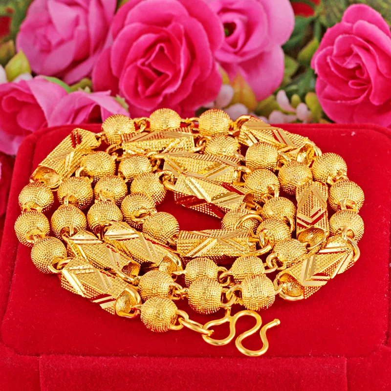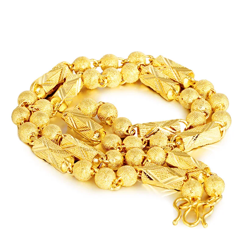 Купить Luxury 24K Yellow Gold Necklace for Men Bead Solid Chain Dragon Head Necklace Hand Men's Chain Party Birthday Fine Jewelry Gifts за 1450рублей