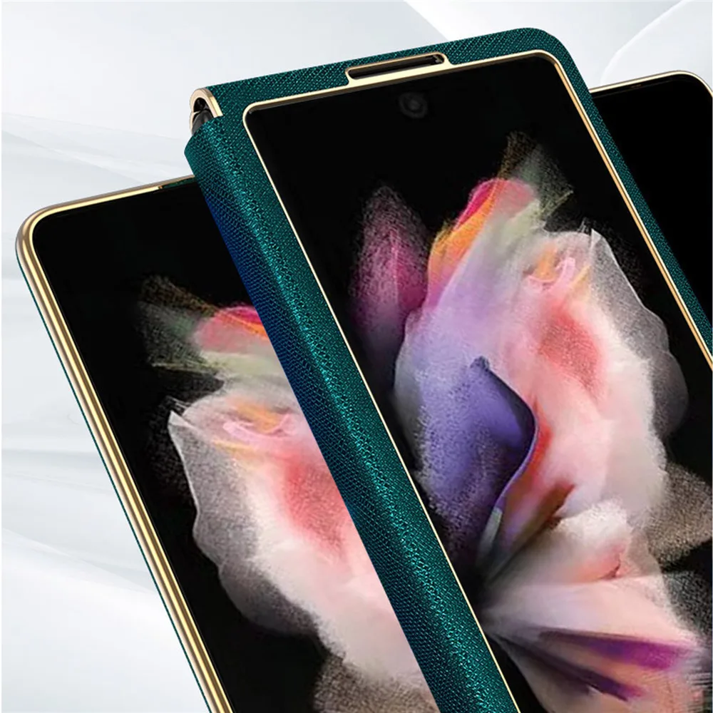 Купить Luxury Electroplating Frame Leather Phone Case w/ Stand Back Full Coverage Protective Cover for Samsung Galaxy Z Fold3 5G Mobile за 1150рублей