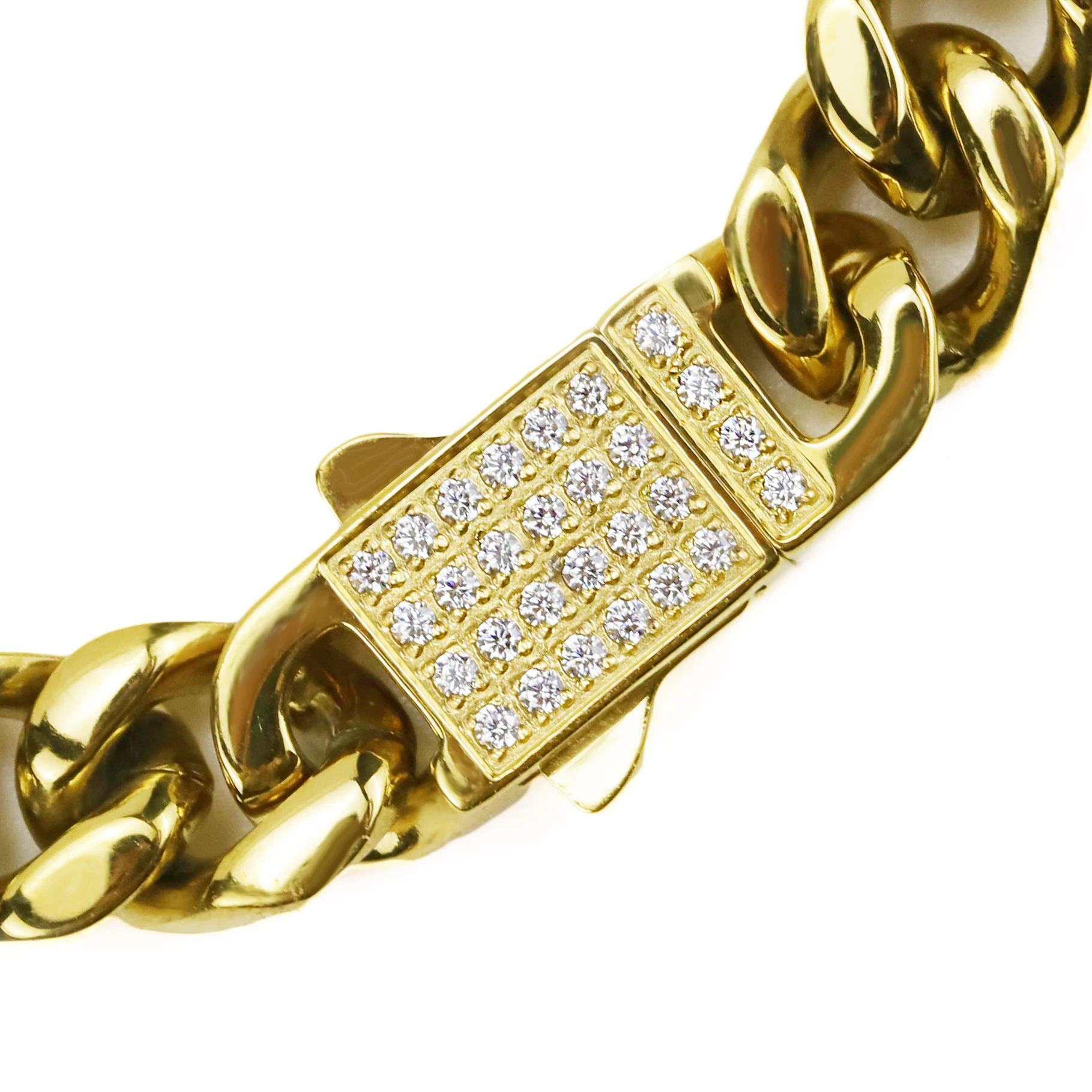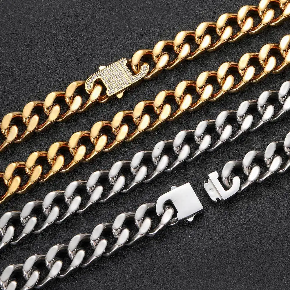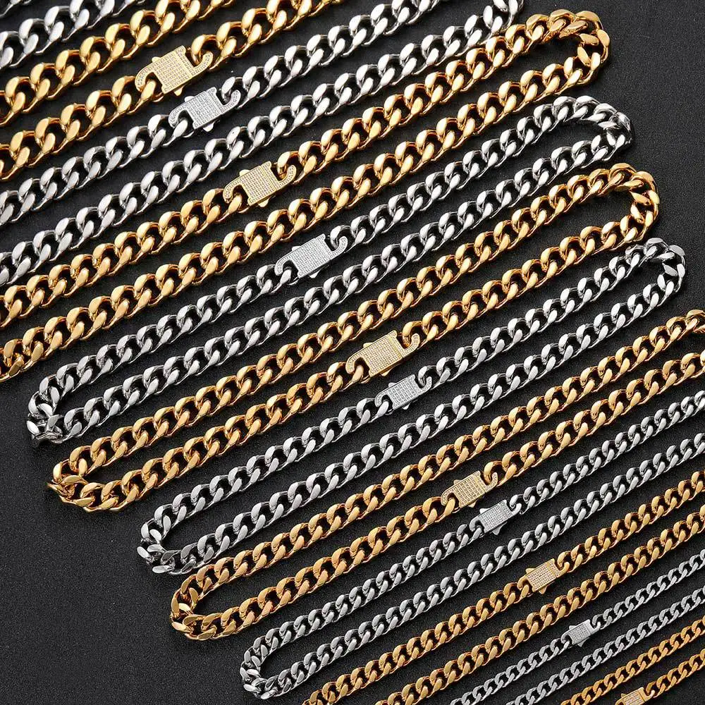 Купить Luxury High Quality Stainless Steel Miami Cuban Chain Men Bracelet Hip Hop Men CZ Spring Buckle Bracelet For Men Rapper Jewelry за 650рублей