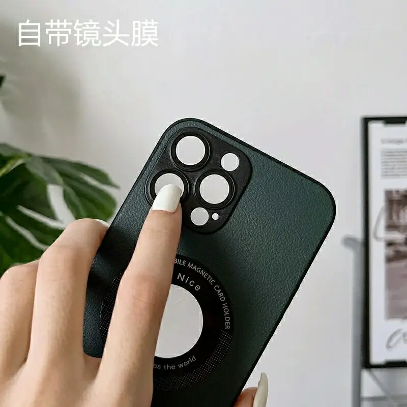 Купить Luxury Leather Logo Hole Case for iPhone 14 Pro Max 13 12 14pro 13pro 14max Glass Camera Film Protection Soft Shockproof Cover за 550рублей