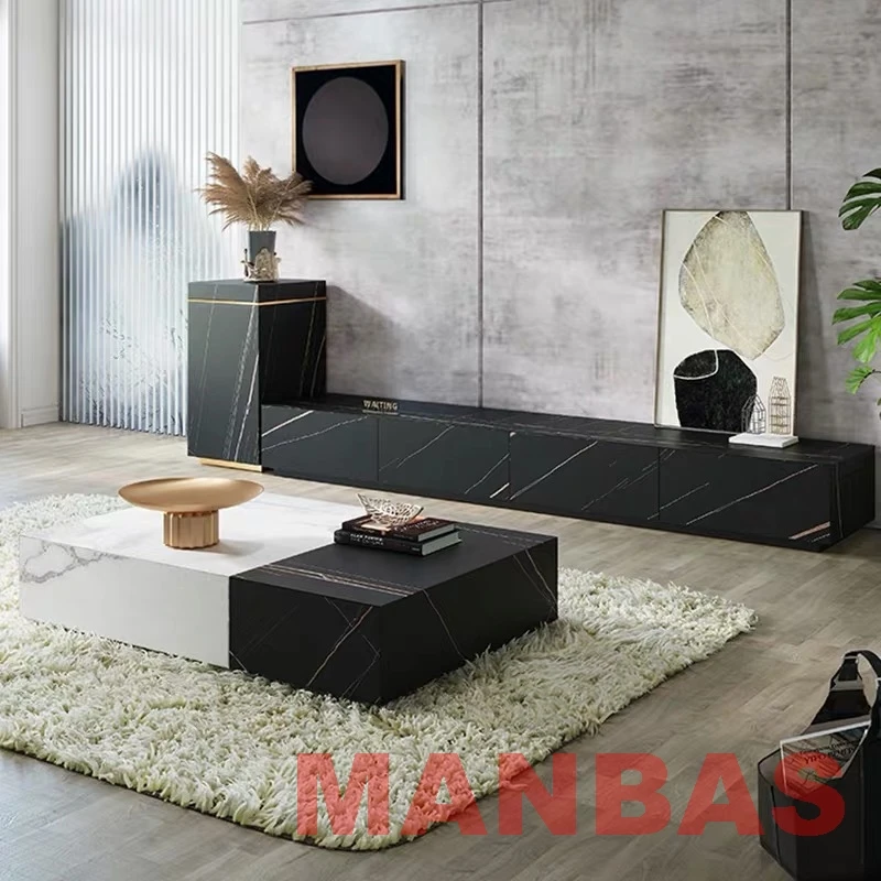 Купить MANBAS Nordic Sintered Stone Table Basse TV Stand Modern Rectangle Coffee Tables Tea Table with Stainless Steel Muebles De Salón за 88300рублей