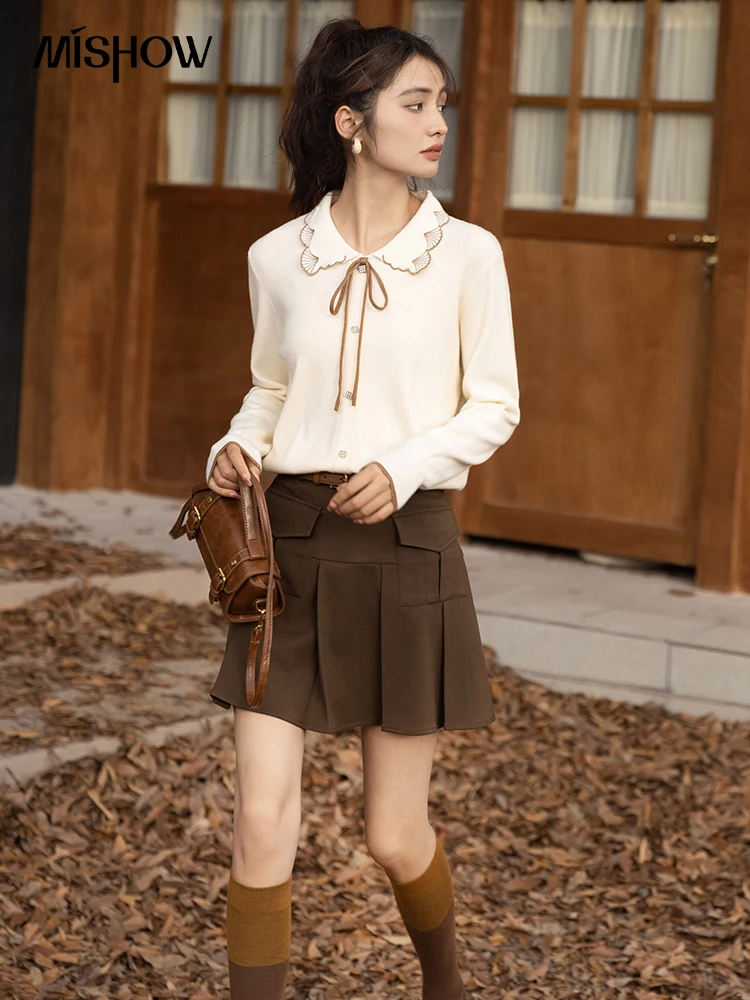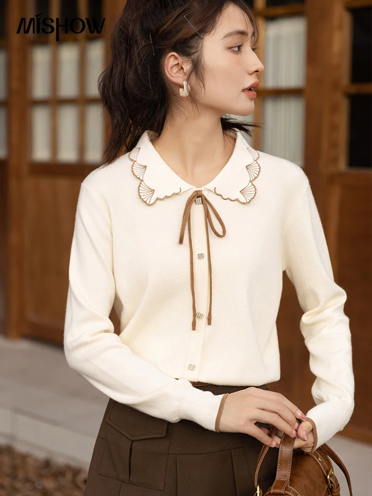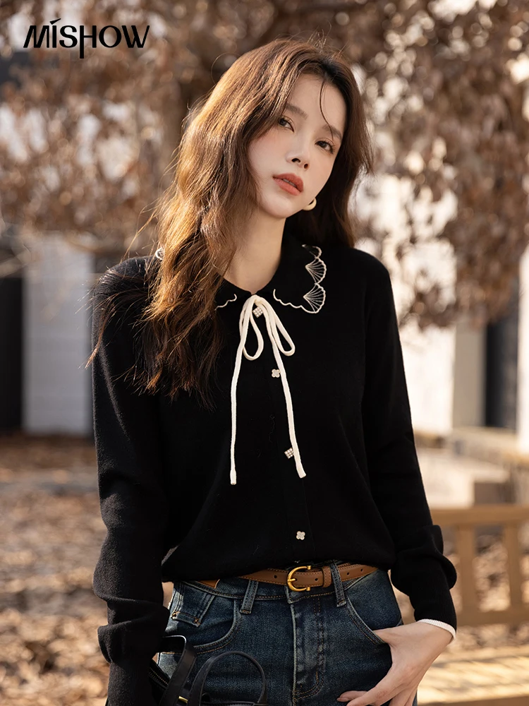 Купить MISHOW Sweater Cardigans for Women Autumn Winter 2022 Soft Lace Up Peter Pan Collar Sweet Female High Strecth Tops MXB38Z0933 за 1550рублей