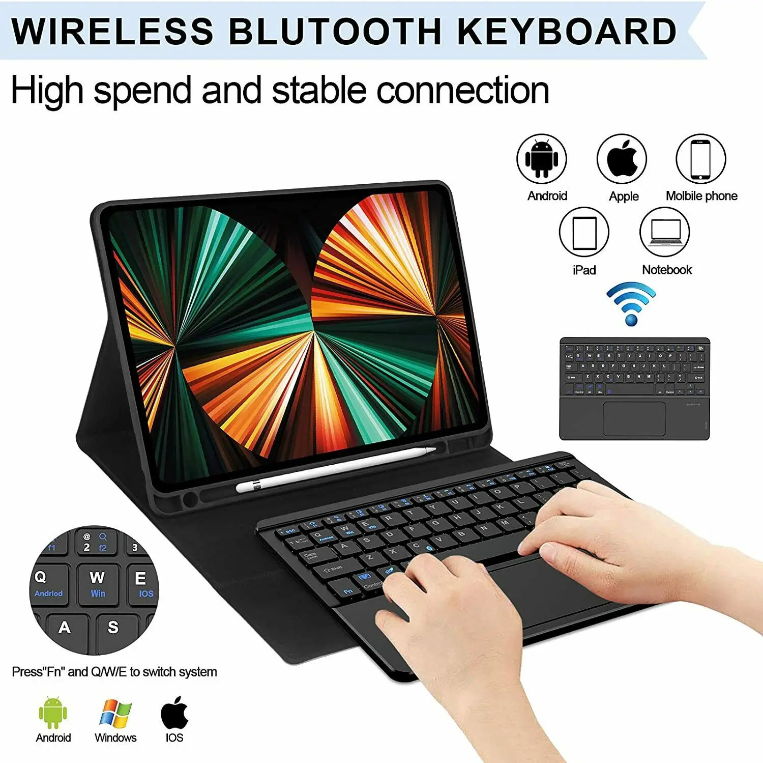 Купить Magnet Touchpad Keyboard Cover with Pen Slot Wireless Bluetooth Keyboard Shockproof Soft Case for IPad Air4 Pro11 2018 2020 2021 за 2250рублей