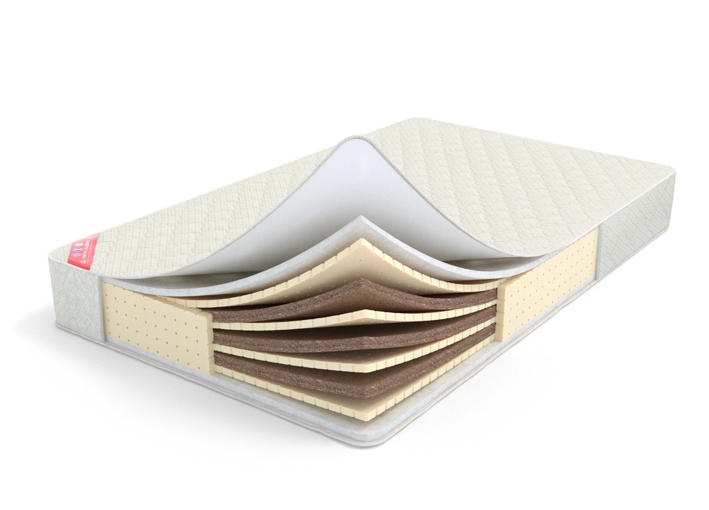 Скрученный матрас на беспружинной основе. Слои искусственного латекс… ещёа и кокоса внутри. Поставляется в чехле из синтетического жаккарда.
