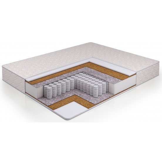 Жесткий ортопедический матрас на независимых пружинах с натуральной кокосовой койрой. Чехол: трикотаж.