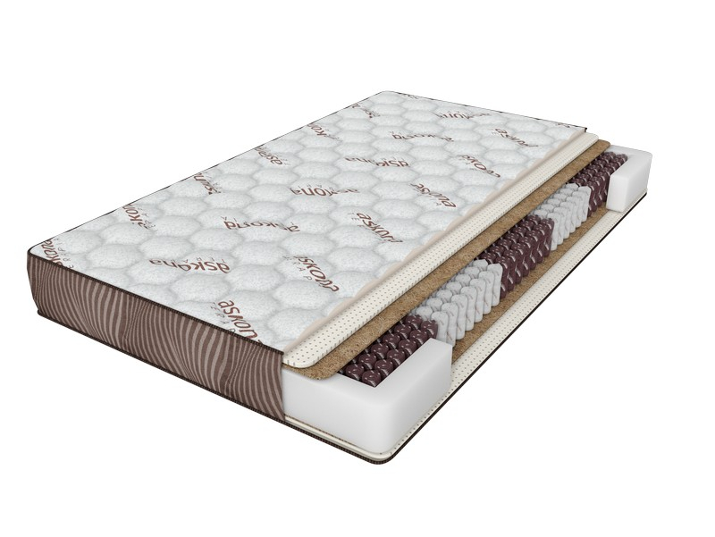 Самый бюджетный вариант из каталога Аскона Balance. Блок Боннель и и… ещёскусственный латекс. Прочный жаккардовый чехол, стеганый на синтепоне.