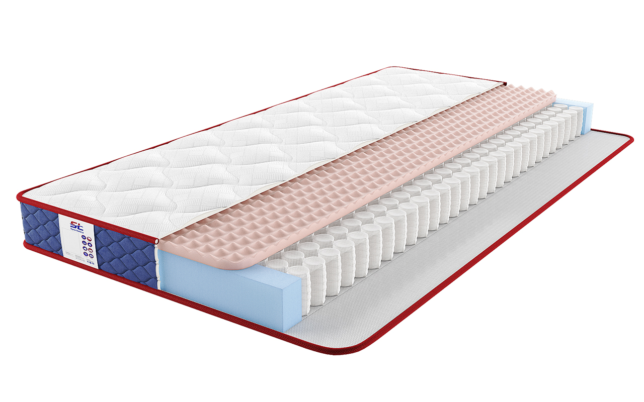 Модель на базе блока пружин Боннель — надежной проверенной временем … ещёконструкции. Вся конструкция усилена коробом из ППУ по периметру.