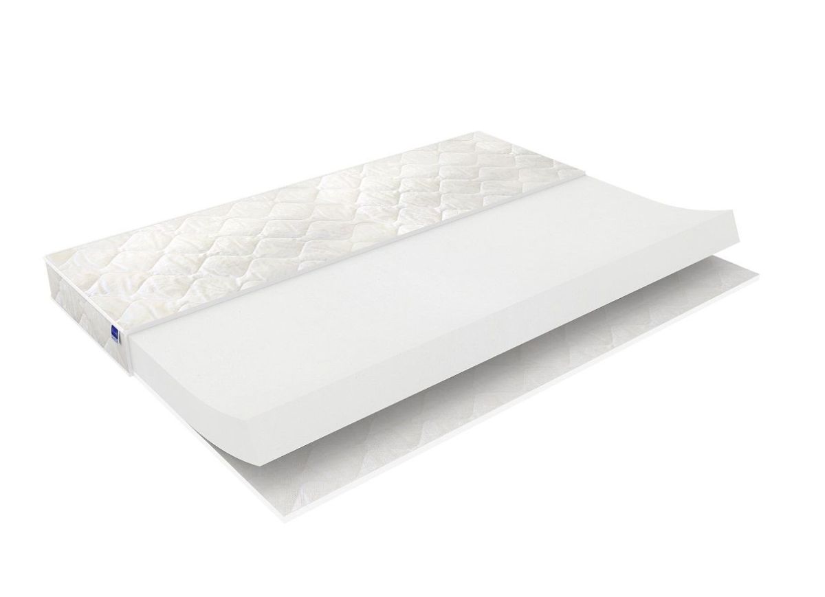 Невысокий матрас из монолитной плиты ортопедической пены. Несъемный чехол из хлопкового жаккарда.