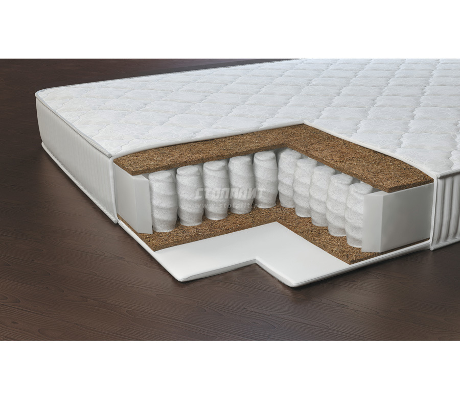 Двусторонний матрас из трех видов искусственного латекса и плиты кокосовой койры. Чехол — жаккард.