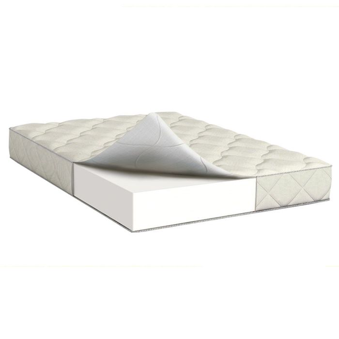Невысокий матрас из монолитной плиты ортопедической пены. Несъемный чехол из хлопкового жаккарда.