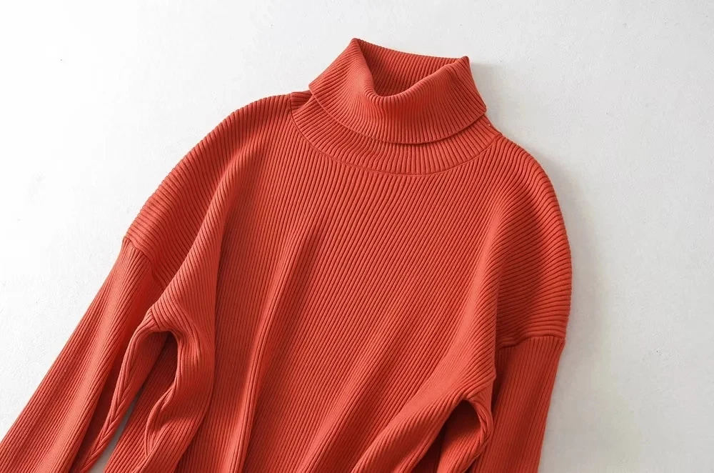 Купить Maxdutti Ins Fashion Blogger Vintage Turtleneck Solid Tops Loose Knitwear Rib Winter Sweaters Women Pullovers за 1250рублей
