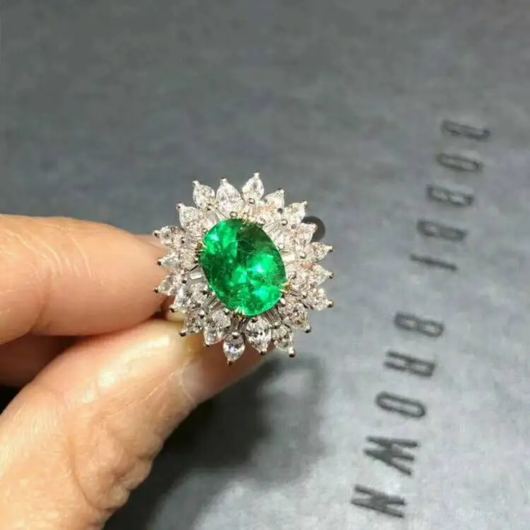 Купить [MeiBaPJ 5*7mm Big Natural Emerald Gemstone Flower Ring for Women Real 925 Sterling Silver Charm Fine Wedding Jewelry за 7100рублей