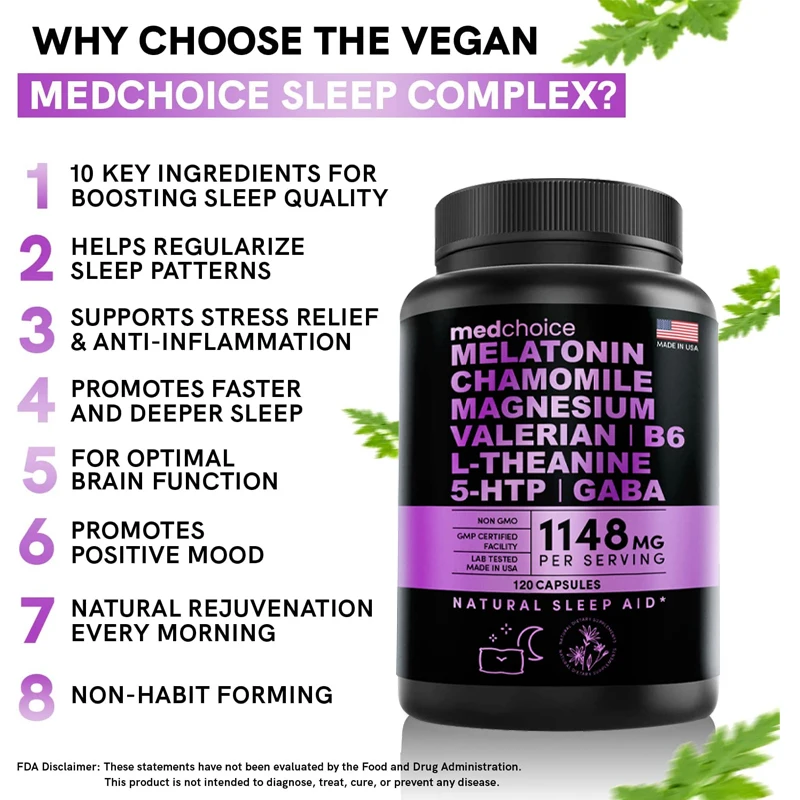 Купить Melatonin 10 In 1 Natural Sleep Aid for Adults with Theanine, Valerian Root, Chamomile for Sleep, Stress & Mood Support за 200рублей